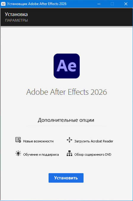 Год выпуска: 2026 Версия: 26.2.0.49 Разработчик: Adobe Автор сборки: m0nkrus Платформа: Windows x64 Язык интерфейса: Английский / Испанский / Итальянский / Китайский (упрощенный) / Корейский / Немецкий / Португальский / Русский / Французский / Японский / Английский с поддержкой арабского письма / Английский с поддержкой иврита / Английский (Великобритания) / Испанский (Мексика) / Французский (Канада) / Французский (Марокко) Лекарство: Вылечено Системные требования: • 64-битная версия Microsoft Windows 11 (версия 24H2 или более поздняя); 64-битная версия Microsoft Windows 10 / 11 • Процессор Intel 6-го поколения или AMD Ryzen 1000 с поддержкой AVX2 (рекомендуется процессор Intel 11-го поколения / более новый CPU с поддержкой Quick Sync или AMD Ryzen 3000 / Threadripper 3000 или выше) • 16 ГБ RAM (рекомендуется 16 ГБ для медиаданных HD; 32 ГБ для медиаданных 4K) • 8 ГБ свободного пространства на жестком диске; во время установки требуется дополнительное свободное пространство • Видеокарта с 4 ГБ видеопамяти (рекомендуется 8 ГБ) • Разрешение экрана 1440x900 (рекомендуется 1920x1080 и выше; DisplayHDR 1000 для рабочих процессов с использованием HDR) • Звуковая карта с поддержкой ASIO или Microsoft Windows Driver Model • Сетевая карта с пропускной способностью 1 Гбит/c для обмена медиаданными HD (рекомендуется 10 Гбит/с для обмена медиаданными 4K) • Для доступа к онлайн-сервисам требуется подключение к Интернету и регистрация Описание: Adobe After Effects - популярная программа для редактирования видео и динамических изображений, создания композиций, различных эффектов и анимации. Наиболее часто ее используют для обработки видеоматериалов (постпродакшн), создания музыкальных клипов, рекламных роликов, анимации, титров, а также множества других элементов, для которых необходимы цифровые видеоэффекты. Adobe After Effects предлагает великолепные функции управления, широкий выбор инструментов для творчества, а также возможность интеграции с другими приложениями для обработки видеоматериалов. Благодаря обширной библиотеке плагинов, разработанных сторонними компаниями, Adobe After Effects также используется в полиграфии и графическом дизайне для редактирования статичных графических изображений (фотографий, изображений, созданных на компьютере, и пр.). - 3D-материалы Substance (SBSAR) Применяйте материалы Substance (.sbsar файлы) к 3D-моделям и параметрическим сеткам для изучения широкого спектра визуальных стилей и достижения стилизованного внешнего вида. - Создание параметрических сеток Используйте новый инструмент «Сетка» для создания параметрических форм, таких как сферы, кубы и конусы, непосредственно в приложении, с возможностью настройки или анимации их размера, формы и внешнего вида. - Включение функции отбрасывания теней от источников света Добавьте в свою 3D-сцену несколько источников света: точечных, параллельных и окружающих, отбрасывающих тени, используя модуль рендеринга Advanced 3D в 3D-композиции. - Поддержка осей меняющихся шрифтов Анимируйте меняющиеся шрифты OpenType в After Effects, используя один файл шрифта, который включает несколько стилей для точного контроля над толщиной, шириной и стилем. - Улучшено преобразование слоев Illustrator Теперь слои Illustrator сохраняют градиентные заливки, обводки и прозрачность при преобразовании в собственные слои фигуры, которые также поддерживают анимируемые Масштаб и Поворот для градиентов. - Импорт SVG-файлов как векторов Импортируйте SVG-файлы непосредственно в 