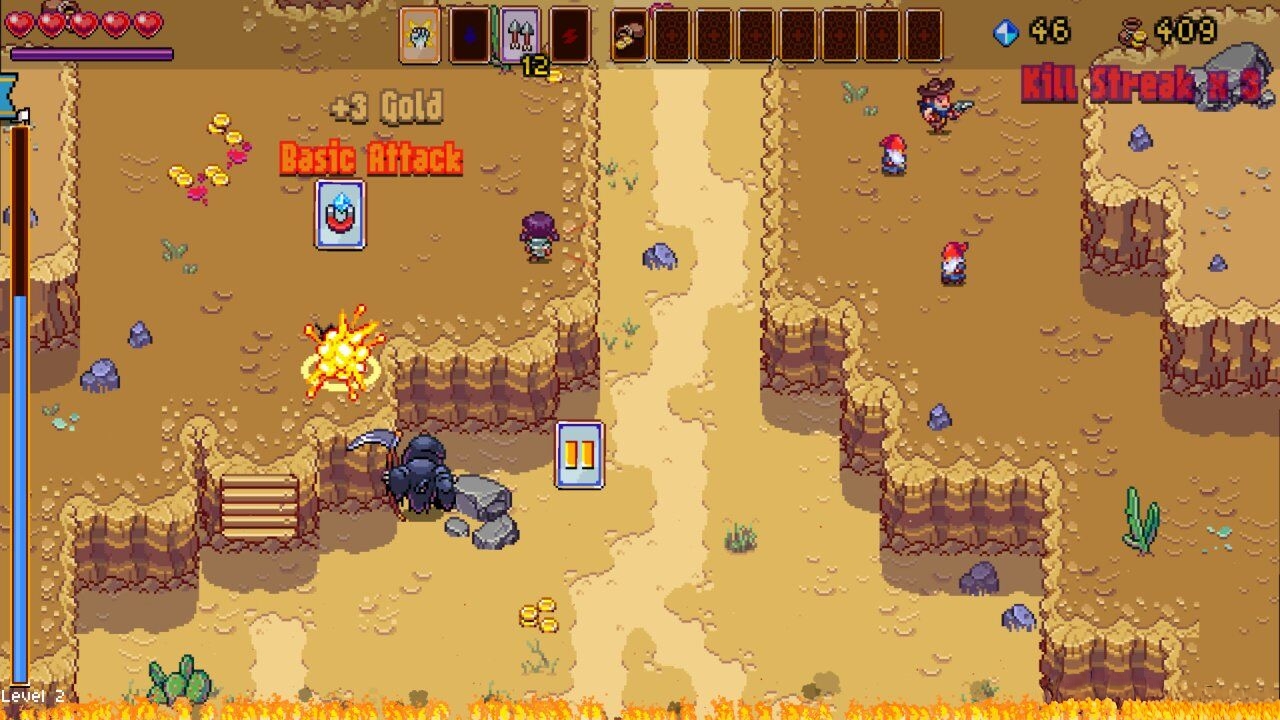 Добыча и прогресс: собирайте золото и ценные улучшения, покупайте усиления и способности у торговцев с прибабахом.