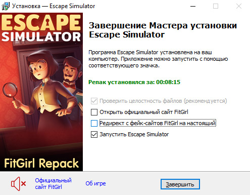 - После установки доступна опция проверки контрольных сумм всех файлов, чтобы убедиться, что репак установился нормально