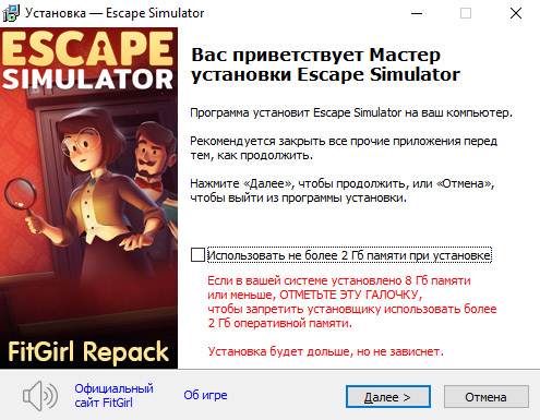 - Для установки репака требуется минимум 2 Гб свободной оперативной памяти (включая виртуальную)