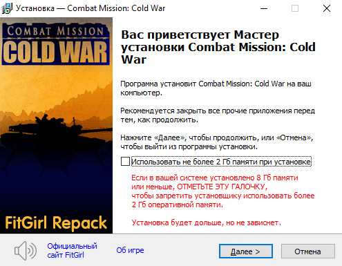 - Для установки репака требуется минимум 2 Гб свободной оперативной памяти (включая виртуальную)