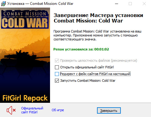 - После установки доступна опция проверки контрольных сумм всех файлов, чтобы убедиться, что репак установился нормально
