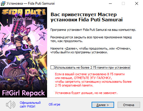 • Репак основан на ISO-образе Fida.Puti.Samurai.Furry.Road-I_KnoW: ik-fp20c.iso (2,628,059,136 байт)