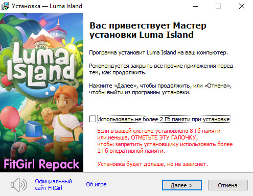 - Репак основан на ISO-образе Luma.Island.v1.1.3.25171-TENOKE: tenoke-luma.island.v1.1.3.25171.iso (7,280,402,432 байта)