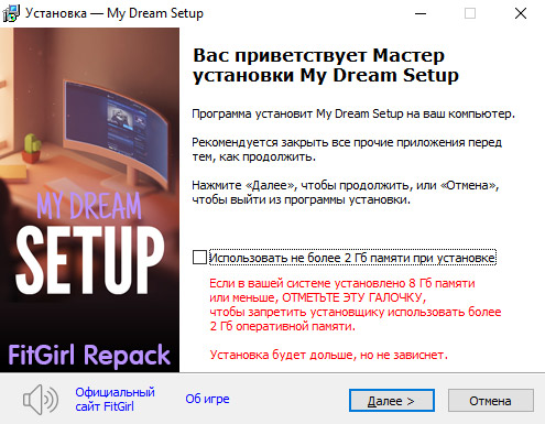 - Для установки репака требуется минимум 2 Гб свободной оперативной памяти (включая виртуальную)