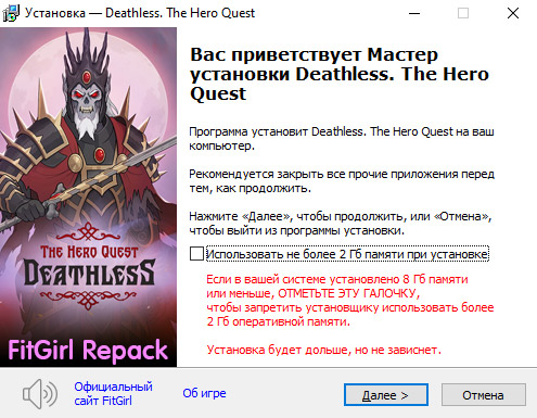 - Репак основан на ISO-образе Deathless.The.Hero.Quest-RUNE: rune-deathless.the.hero.quest.iso (2,772,074,496 байт)