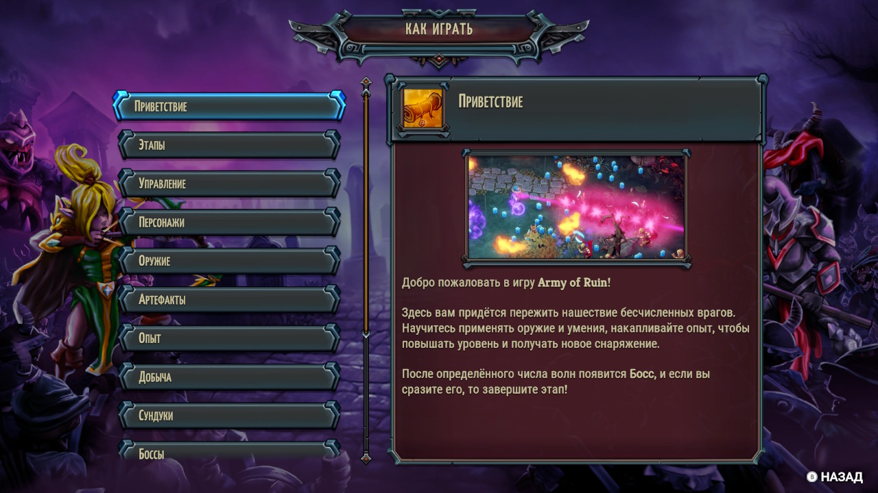 Описание: Уничтожайте полчища врагов, пользуясь мощным оружием и смертоносными заклинаниями! Становитесь сильнее и сталкивайтесь с ещё большими опасностями! Army of Ruin — автошутер, в котором вы лично превращаетесь в пулевой ад.