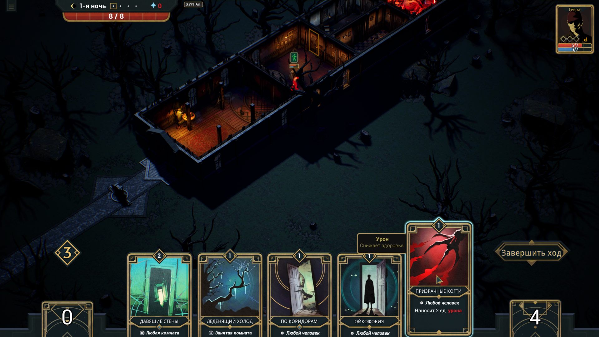 Днём тщательно возводите лабиринты комнат и превратите особняк в смертельную ловушку, из которой невозможно сбежать. Ну а по ночам заманивайте беспечных зевак внутрь, где с помощью колоды жутких карт вы сможете призывать духов, искажать коридоры и насылать на своих жертв леденящие душу кошмары. Поднимайте градус безумия и сводите гостей с ума, но не забывайте защищать центральный зал - средоточие вашего зловещего могущества.