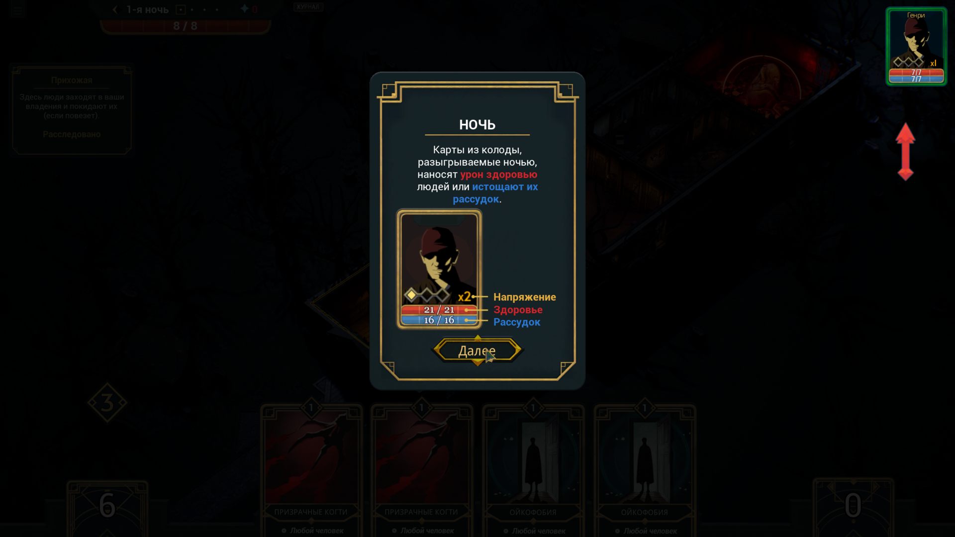 - ПОСЕЯТЬ НАПРЯЖЕНИЕ И СТРАХ - Повышайте градус напряжения по мере продвижения людей по особняку. Для этого применяйте карты прямо на них и в различных комнатах. Медленно подведите жертв к безумию. А когда их испуг достигнет критического уровня, используйте подходящие ужасы, чтобы подтолкнуть их за грань. Позволите ли вы им сбежать?