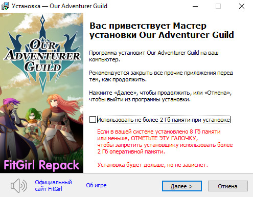 - Репак основан на ISO-образе Our.Adventurer.Guild.Tower.of.the.Wizard.King-TENOKE: tenoke-our.adventurer.guild.v1.61.iso (3,419,932,672 байта)