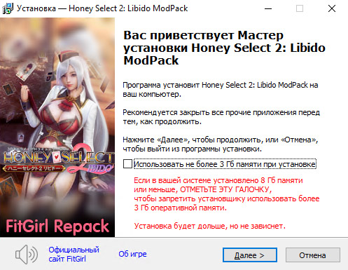 - Для установки репака требуется минимум 3 Гб свободной оперативной памяти (включая виртуальную)
