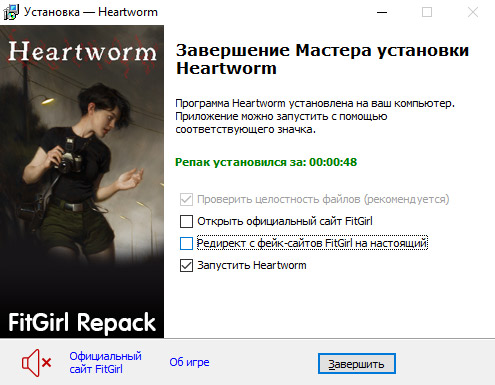 - После установки доступна опция проверки контрольных сумм всех файлов, чтобы убедиться, что репак установился нормально