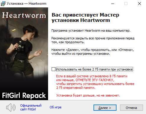 - Репак основан на ISO-образе Heartworm-TENOKE: tenoke-heartworm.iso (8,389,066,752 байт)