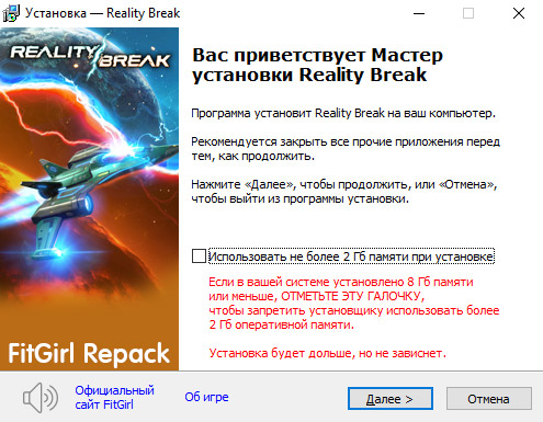 - Для установки репака требуется минимум 2 Гб свободной оперативной памяти (включая виртуальную)
