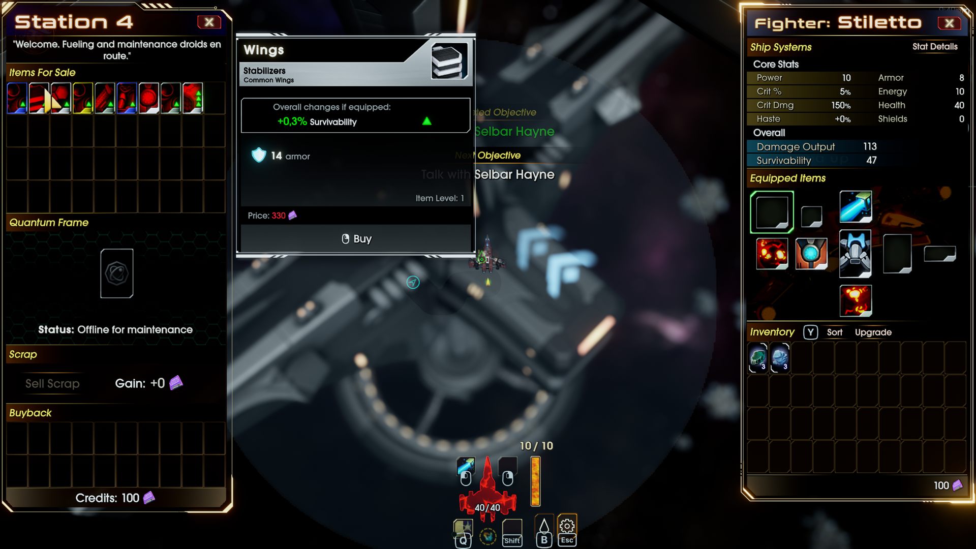 В игре есть и другие полезные штуки - например, Кодекс, который даёт бонусы за собранные комплекты предметов. Можно прокачивать свой корабль, ставить на него разное оборудование и даже боевых дронов. Только слотов под всё это добро немного, так что приходится выбирать, что действительно нужно.
