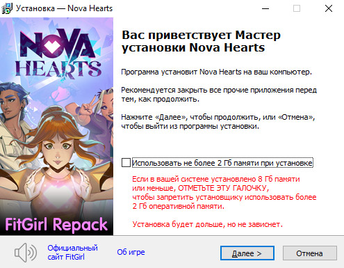 - Репак основан на ISO-образе Nova.Hearts-TENOKE: tenoke-nova.hearts.iso (6,469,144,576 байт)