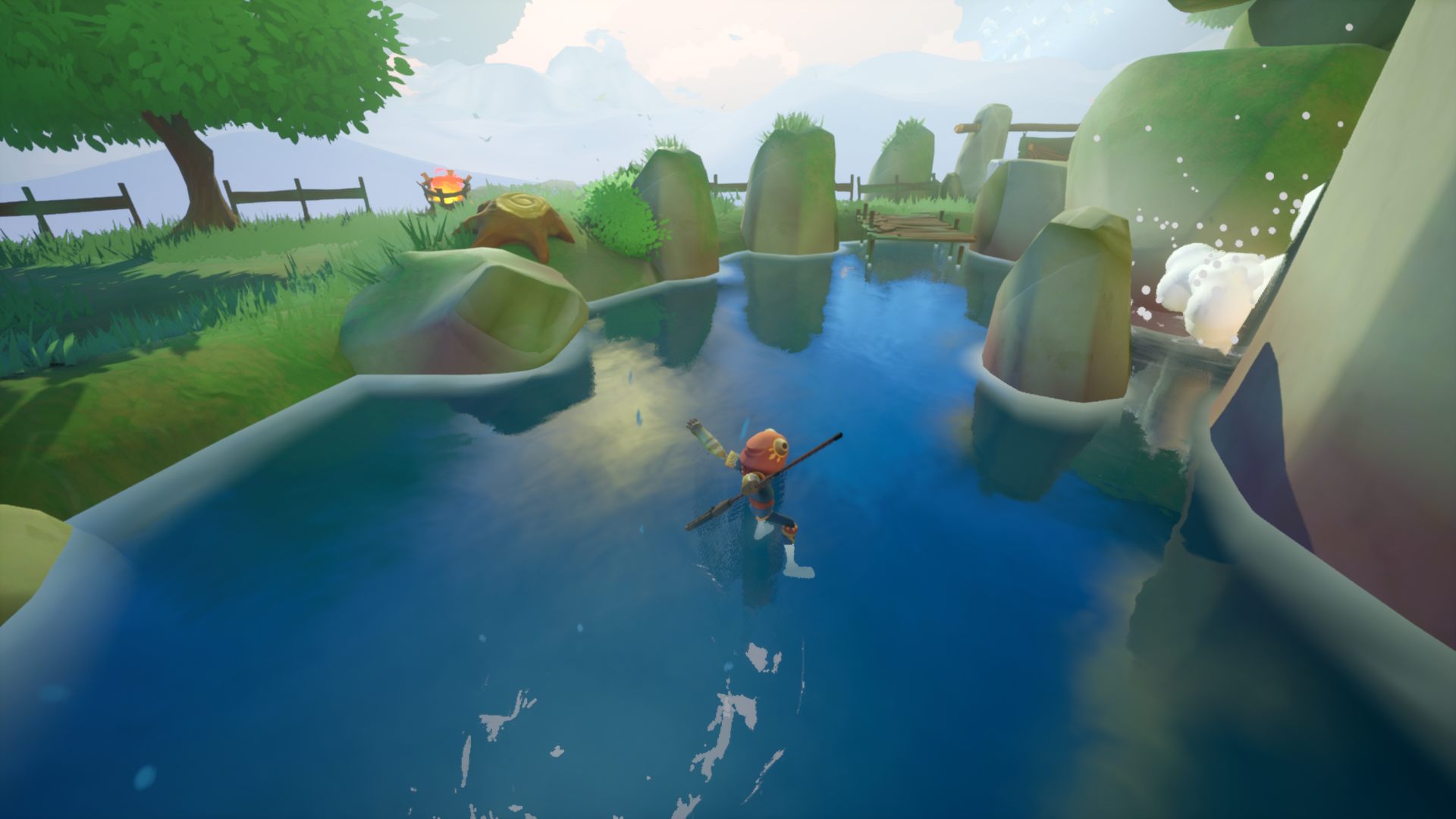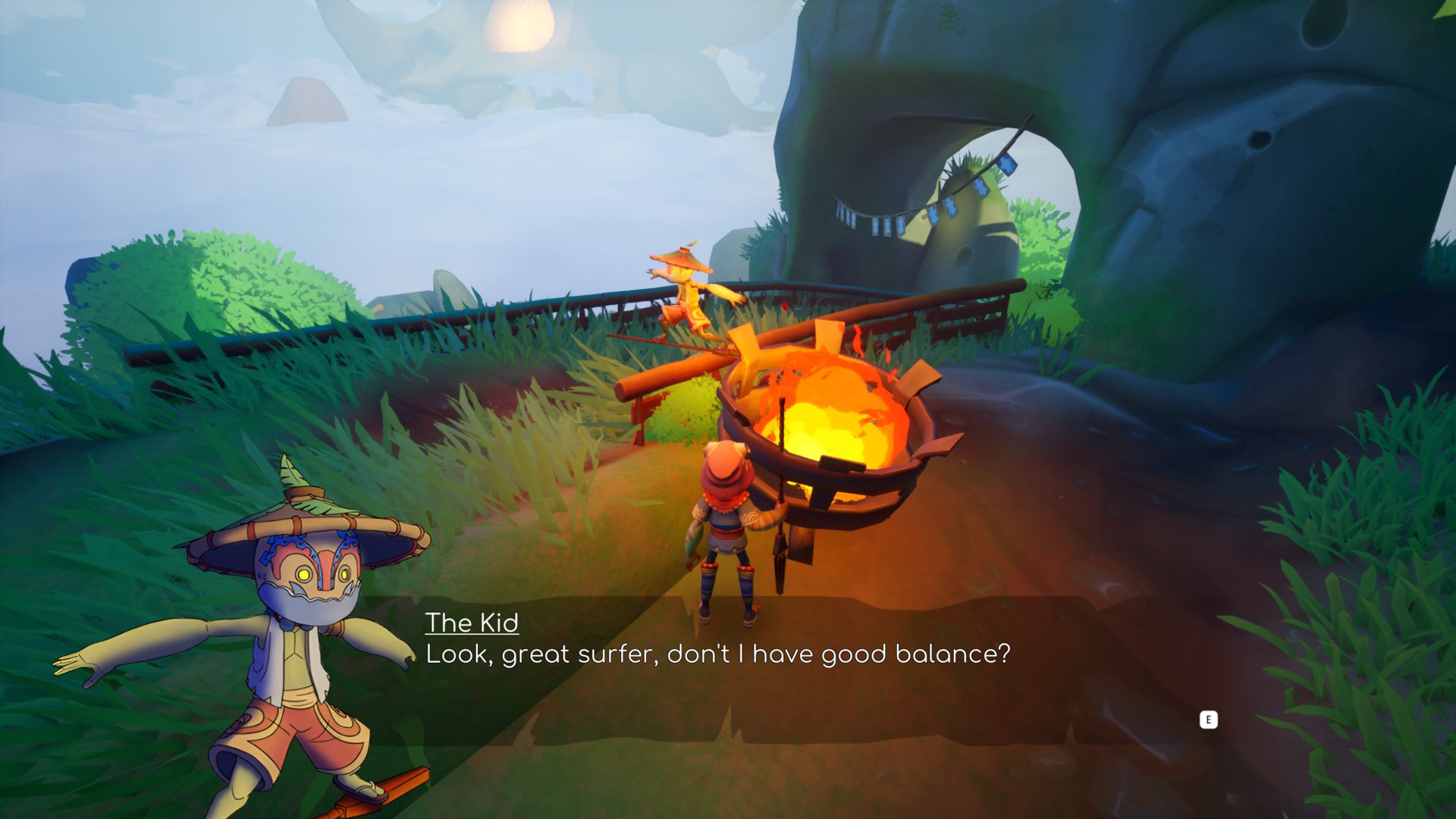 Используйте свою летающую доску и посох, чтобы перемещаться по этому миру. По мере путешествия вы будете открывать новые способы передвижения в зависимости от окружения: прыжки в водяном гейзере, отскок от медузы или полёт внутри пузыря - этот мир никогда не перестанет удивлять вас.