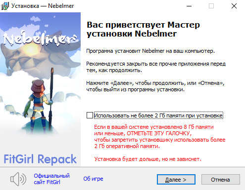 - Для установки репака требуется минимум 2 Гб свободной оперативной памяти (включая виртуальную)