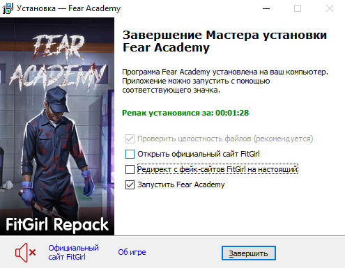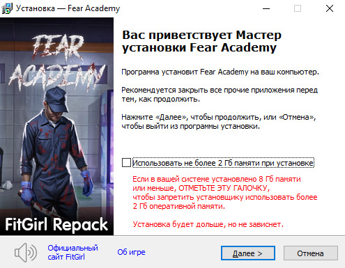 - Репак основан на ISO-образе Fear.Academy-TENOKE: tenoke-fear.academy.iso (8,850,294,784 байта)