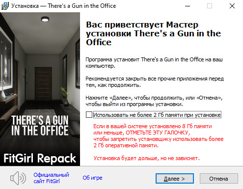 - Для установки репака требуется минимум 2 Гб свободной оперативной памяти (включая виртуальную)
