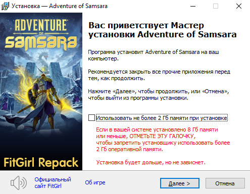 - Для установки репака требуется минимум 2 Гб свободной оперативной памяти (включая виртуальную)