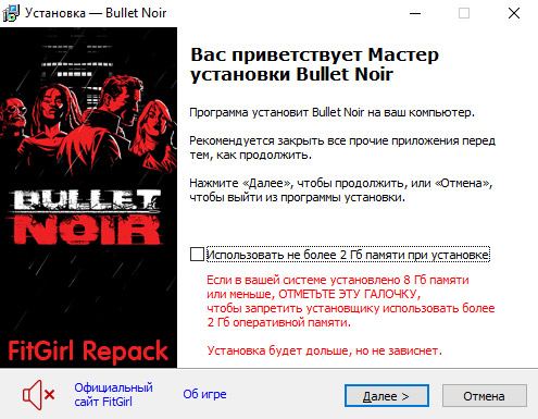 - Репак основан на ISO-образе Bullet.Noir-RUNE: rune-bullet.noir.iso (2,480,635,904 байта)