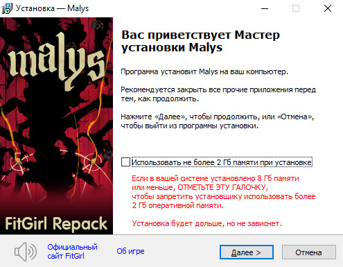 - Репак основан на ISO-образе Malys-TENOKE: tenoke-malys.iso (1,324,300,288 байт)