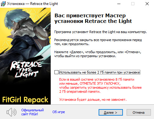 - Для установки репака требуется минимум 2 Гб свободной оперативной памяти (включая виртуальную)