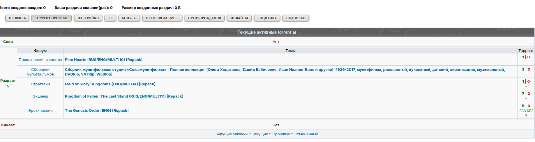 maxgr писал(а): Как то странно, с тапок скачивание работает, раздача нет. На другом трекере работает и закачака и раздачи скажем так, пока из известных популярных, только тапки получили бан и то такой странный, что только связь, пиринг жив
