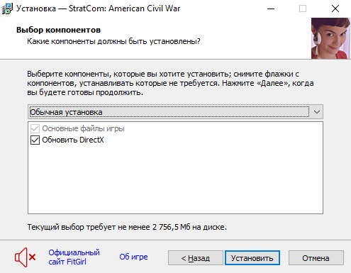 - Попробуйте установить игру НЕ на диск C:, либо наоборот - НА диск C:, если на другой не ставится - права в Windows штука такая...