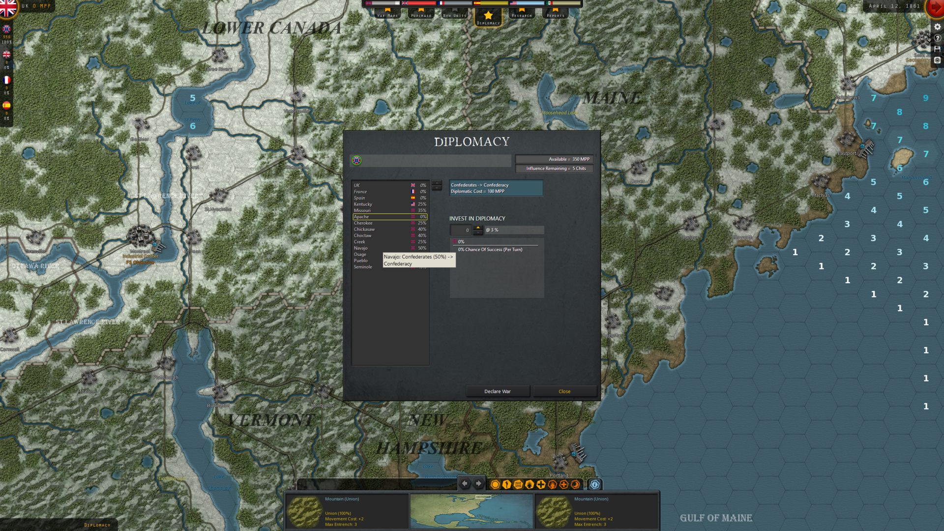В 1861 году большинство солдат были добровольцами, которые нуждались в обучении и подготовке. Вы должны создать тренировочные лагеря и сформировать бригады и дивизии из своих рекрутов. Вы также можете назначать известных генералов на командные посты и следить за их действиями.