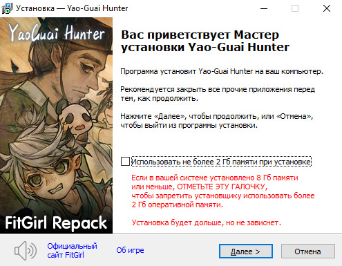 • Репак основан на ISO-образе Yao-Guai.Hunter.v1.2.5-TENOKE: tenoke-yao-guai.hunter.v1.2.5.iso (9,583,486,976 байт)
