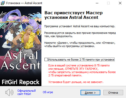 - Для установки репака требуется минимум 2 Гб свободной оперативной памяти (включая виртуальную)