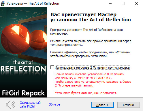 - Репак основан на ISO-образе The.Art.of.Reflection-TENOKE: tenoke-the.art.of.reflection.iso (3,900,016,640 байт)