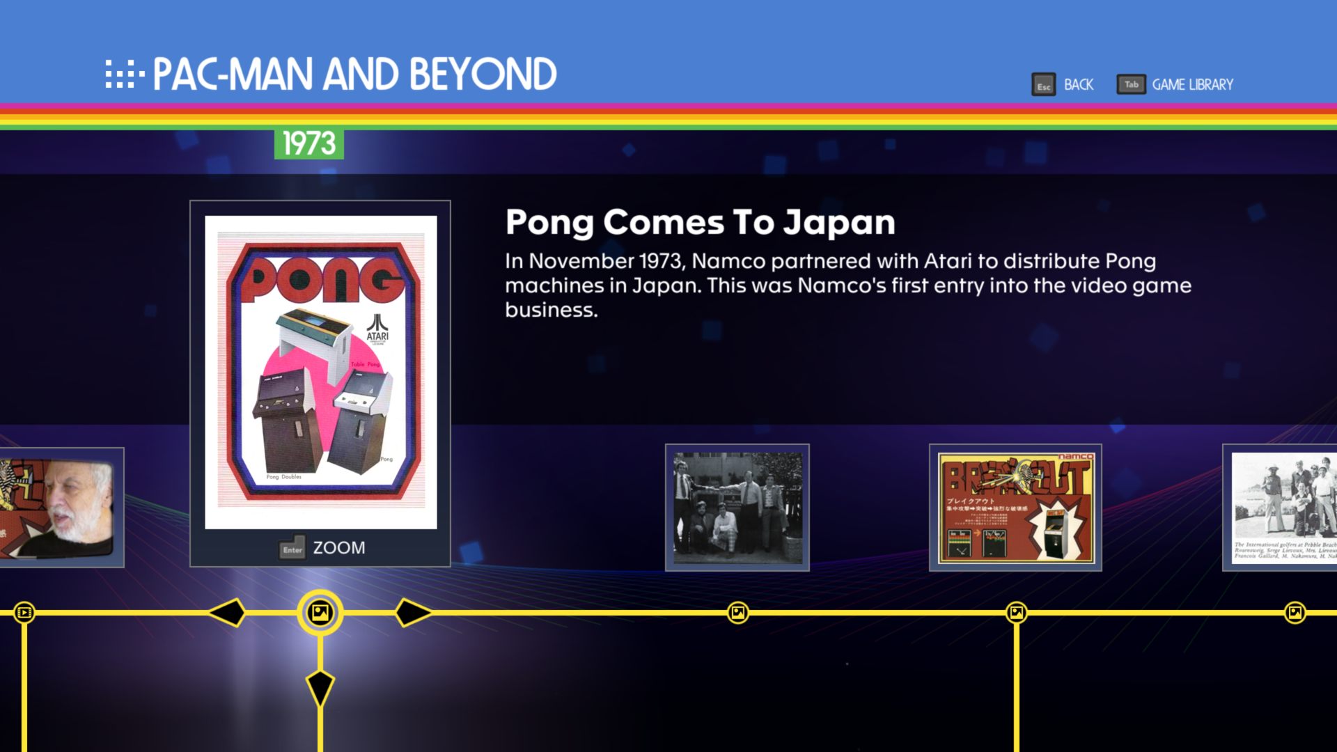 В центре Atari 50 - интерактивные временные шкалы, которые объединяют исторические факты, цифровые артефакты, более 60 минут новых интервью, документальные кадры и игры в единое целое. Когда вы встречаете игру в Timelines, вы можете сразу же сыграть в нее, не теряя своего места.