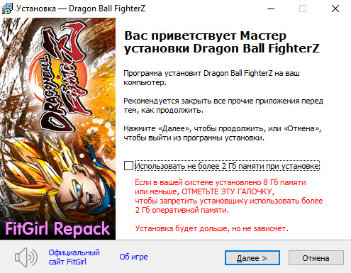 - Для установки репака требуется минимум 2 Гб свободной оперативной памяти (включая виртуальную)