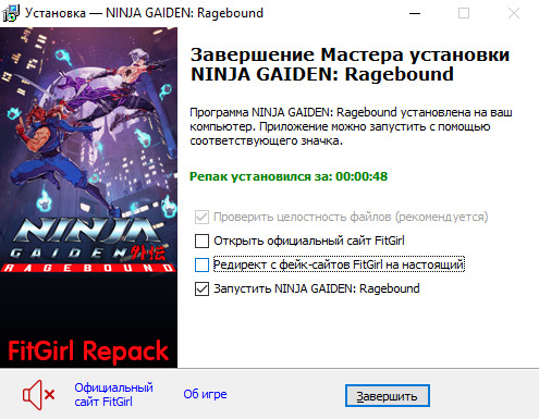 • После установки доступна опция проверки контрольных сумм всех файлов, чтобы убедиться, что репак установился нормально