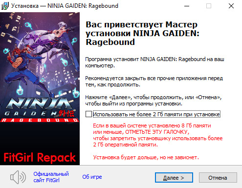 • Для установки репака требуется минимум 2 Гб свободной оперативной памяти (включая виртуальную)