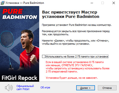 - Репак основан на ISO-образе Pure.Badminton-TENOKE: tenoke-pure.badminton.iso (4,692,391,936 байт)