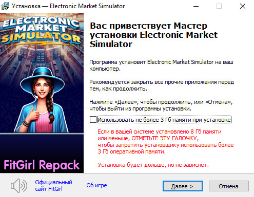 - Для установки репака требуется минимум 3 Гб свободной оперативной памяти (включая виртуальную)