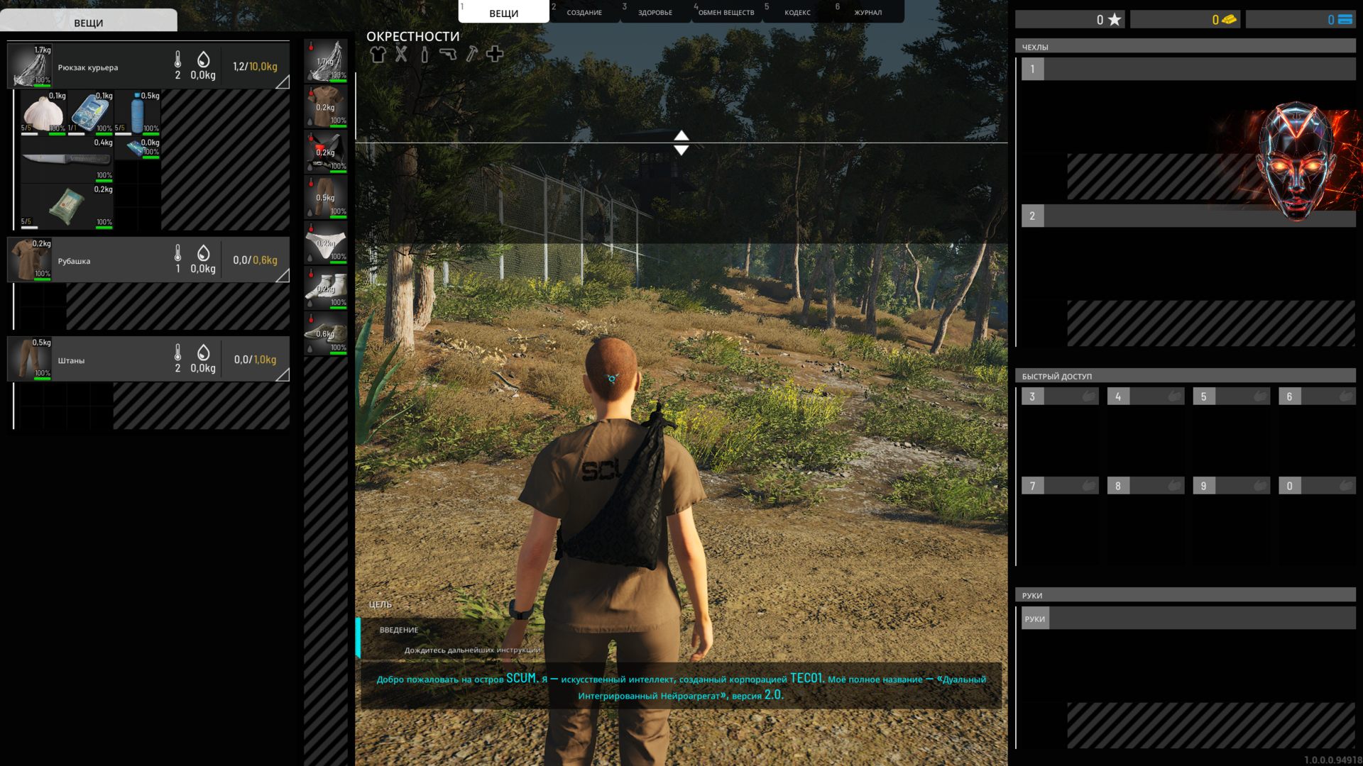 - Продвинутая симуляция: в SCUM множество игровых систем, которые влияют на каждый аспект создания и управления персонажем. Следите за обменом веществ, учитывайте инерцию при движении и помните, что одежда на вашем теле и в рюкзаке сохнет с разной скоростью. Словом, дьявол кроется в деталях...