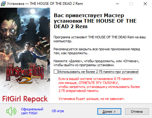 - Для установки репака требуется минимум 2 Гб свободной оперативной памяти (включая виртуальную)