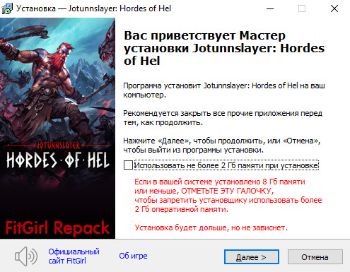 - Для установки репака требуется минимум 2 Гб свободной оперативной памяти (включая виртуальную)