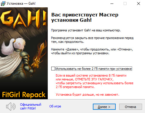 - Для установки репака требуется минимум 2 Гб свободной оперативной памяти (включая виртуальную)