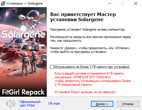 • Для установки репака требуется минимум 2 Гб свободной оперативной памяти (включая виртуальную)