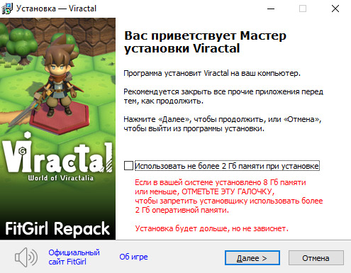 • Для установки репака требуется минимум 2 Гб свободной оперативной памяти (включая виртуальную)