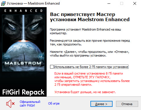 - Для установки репака требуется минимум 2 Гб свободной оперативной памяти (включая виртуальную)
