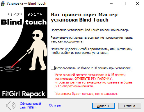 - Репак основан на ISO-образе Blind.Touch-TENOKE: tenoke-blind.touch.iso (1,260,503,040 байт)