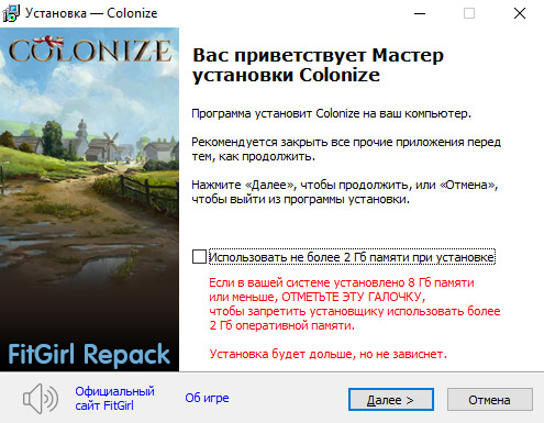 - Для установки репака требуется минимум 2 Гб свободной оперативной памяти (включая виртуальную)