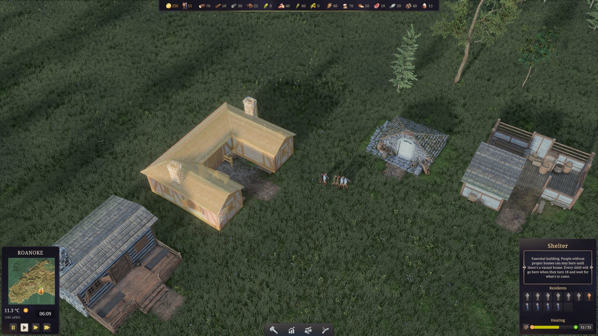 В начале игры вы оказываетесь во главе небольшой группы первопроходцев, которым предстоит обустроиться на необжитой территории. Вам придётся буквально всё строить с нуля - возводить примитивные хижины, охотиться и собирать припасы, следить за посевами.